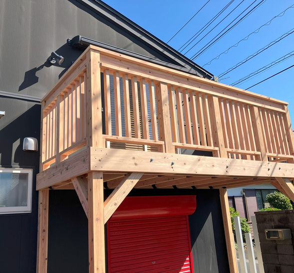当社で12年前、建築された当時に設置した天然木で作ったウッドデッキ。